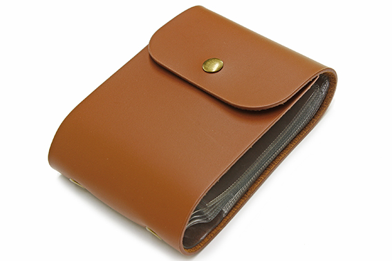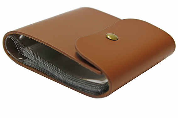 レザー調のリーダーワレットです。厚手のクリアーバッグ10枚を内蔵。